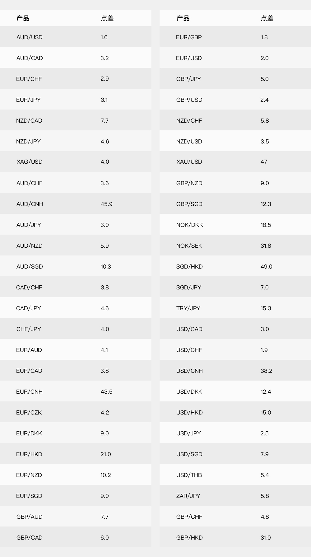 以下为嘉盛的主要交易品种及点差,品种繁多,可以根据自己的判断进行选择: