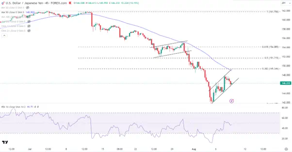 经过了上周日本央行意外加息以及本周央行官员表态不会继续加息冲击金融市场之后,汇价在日线图上144附近形成了反转信号,RSI指标从极端超卖水平小幅回升。尽管已经出现企稳的初步迹象,但反弹前景仍受到市场情绪、套利交易和美日利差等因素的影响,而不确定性通常意味着高波动。USJDPY未来一周的隐含波动率高达20%,因此交易者需要对双向风险有所准备。