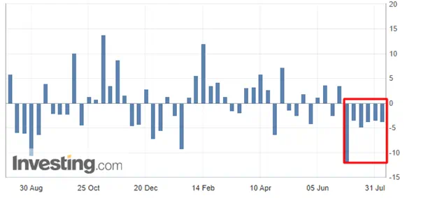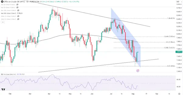 731日后,WTI原油再次形成强劲的看涨吞噬形态,RSI指标连续两次触底并形成背离,油价这一次能真正形成反弹走势?