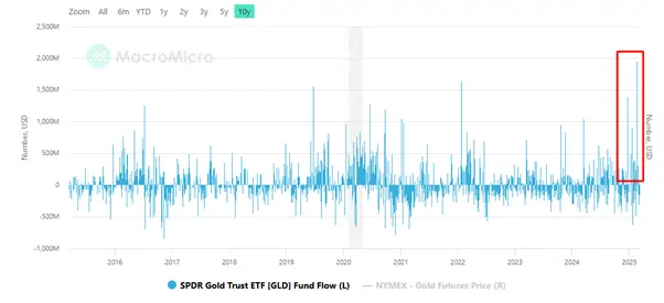 SPDR Gold Trust黄金ETF资金流向   来源:Macromicro